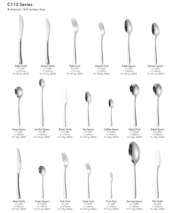 De C112-serie is vakkundig vervaardigd uit hoogwaardig 18/8 roestvrij staal.